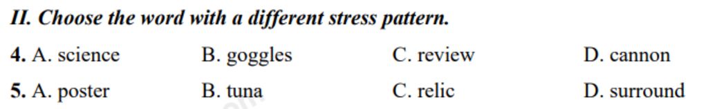 `4.C` nhấn âm `2,` còn lại nhấn âm `1`