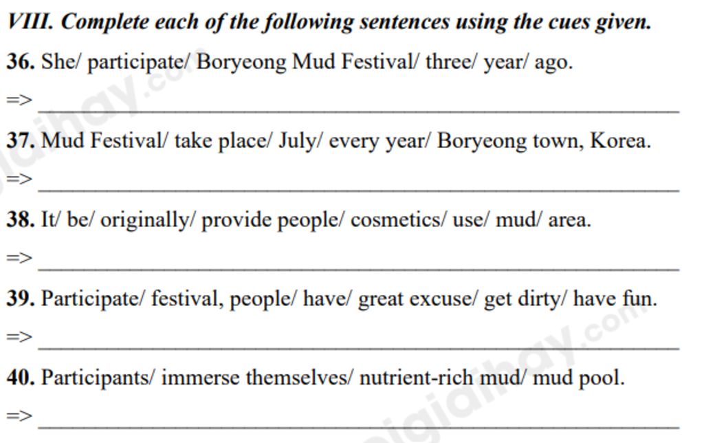 - Trước “Boryeong town” cần dùng giới từ “in”.