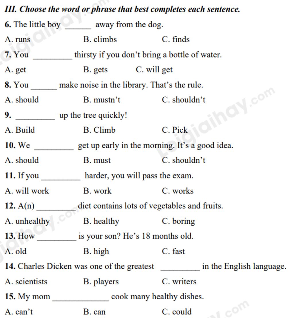 7. You _________ thirsty if you don’t bring a bottle of water.
