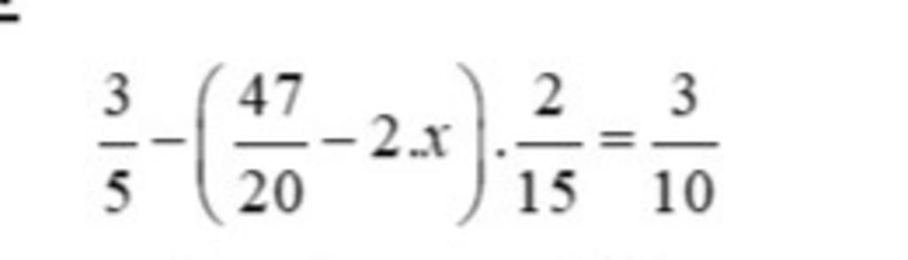 `3/5 - (47/20 - 2x) . 2/15 = 3/10`