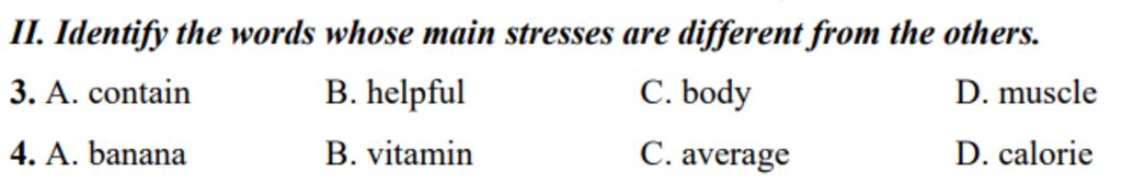 3. A. contain B. helpful C. body D. muscle