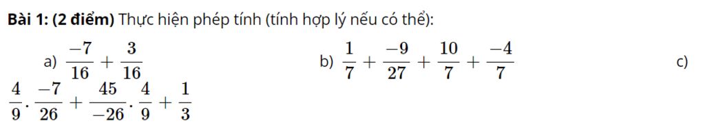 `b)` `1/7 + (-9)/27 + 10/7 + (-4)/7`
