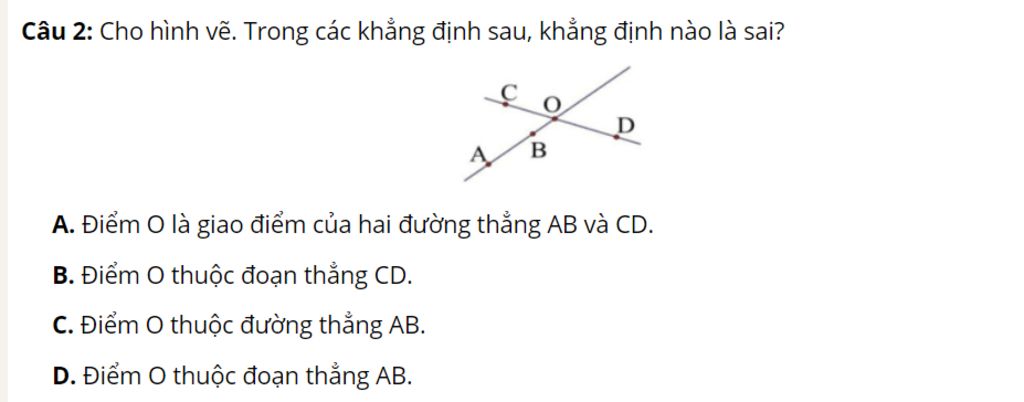 Câu 2: Cho hình vẽ. Trong các khẳng định sau, khẳng định nào là sai?