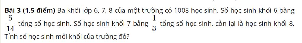 Đáp số : khối 6 : 360 học sinh, khối 7 : 336 học sinh, khối 8 : 312 học sinh