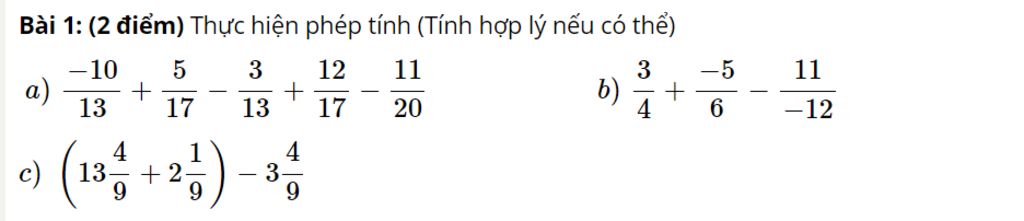 `(-10)/13+5/17-3/13+12/17-11/20`