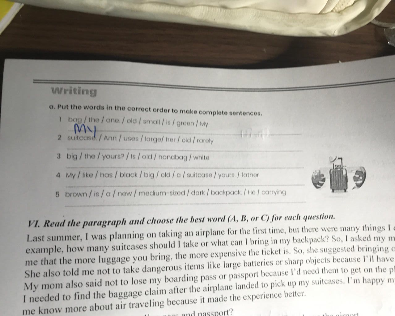 `=>` S+tobe+ Số lượng `→` Kích cỡ `→` Tuổi `→` Hình dạng `→` Màu sắc