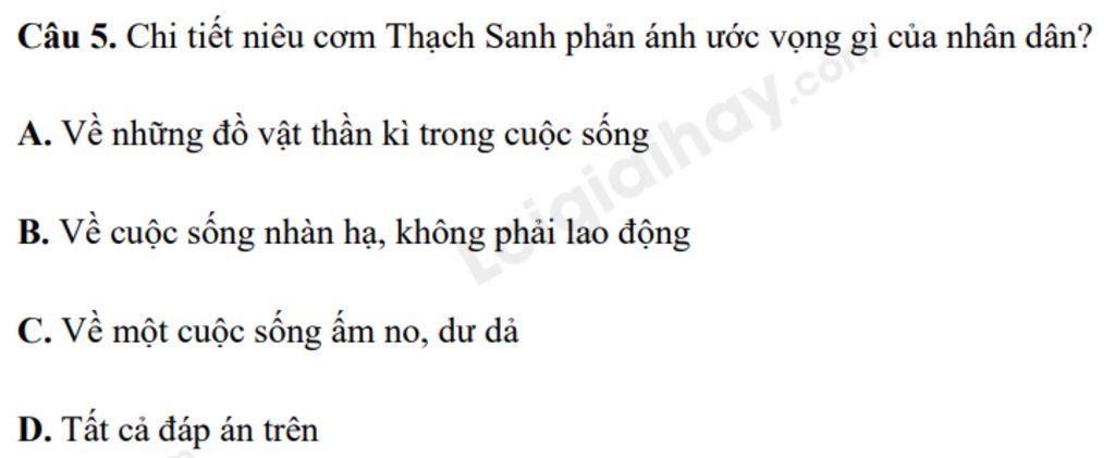 Câu `5` : Chi tiết niêu cơm Thạch Sanh phản ánh ước vọng gì của nhân dân?