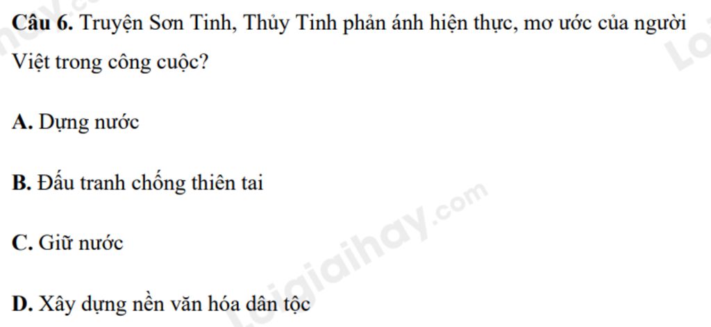⇒ Truyện Sơn Tinh, Thủy Tinh phản ánh hiện thực, mơ ước của người Việt trong công cuộc đấu tranh chống thiên tai.