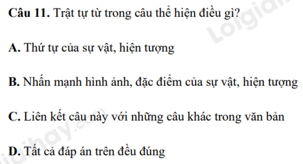 Câu 11. Trật tự từ trong câu thể hiện điều gì