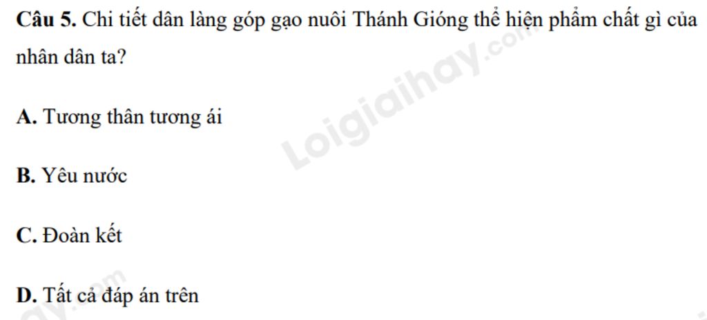 `@` Chi tiết dân làng góp gạo nuôi thánh Gióng thể hiện phẩm chất gì của nhân dân ta?