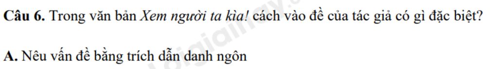 ⇒ Trong văn bản Xem người ta kìa! cách vào đề của tác giả có nêu vấn đề bằng lời kể là đặc biệt.