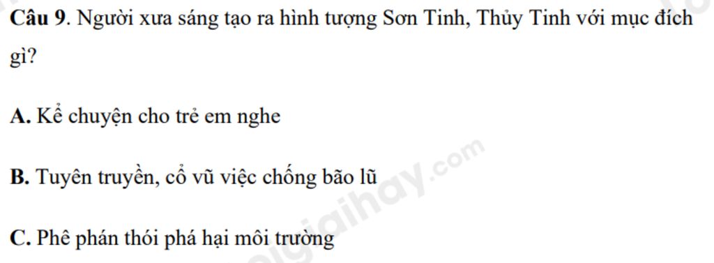 `->``bbD`$\\$ Người xưa sáng tạo ra hình tượng Sơn Tinh, Thủy Tinh với mục đích phản ánh, giải thích hiện tượng bão lũ, thể hiện ước mơ chiến thắng thiên nhiên của nhân dân ta$\\$