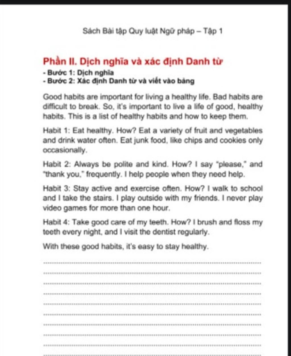 - Đoạn 1: habits, life, list