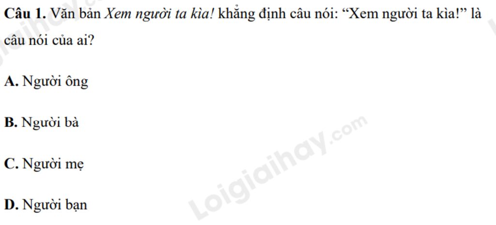 Câu `1:` Văn bản Xem người ta kìa! Khẳng định câu nói trên là của ai?