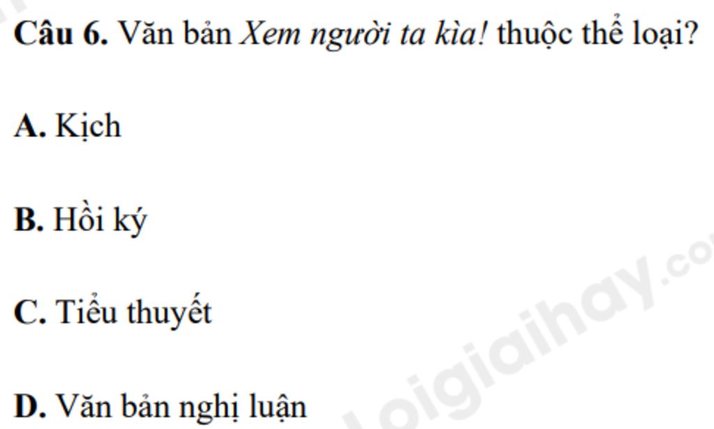 `->``bbC`$\\$"Xem người ta kìa!" là văn bản thuộc thể loại văn bản nghị luận