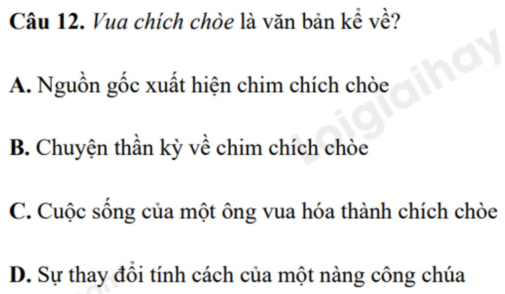 Câu 12. Vua chích chòe là văn bản kể về?