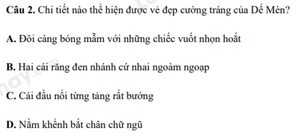 Câu 2: Chi tiết nào thể hiện được vẻ đẹp cường tráng của Dế Mèn?