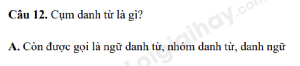 `->` Cụm danh từ là ngữ danh từ, nhóm danh từ, danh ngữ , một tập hợp do danh từ với một số từ ngữ phụ thuộc nó tạo thành , có ý nghĩa cụ thể, chi tiết hơn, có cấu tạo phức tạp hơn