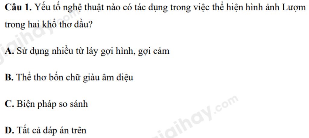 `=>` A. Sử dụng nhiều từ láy gợi hình, gợi cảm