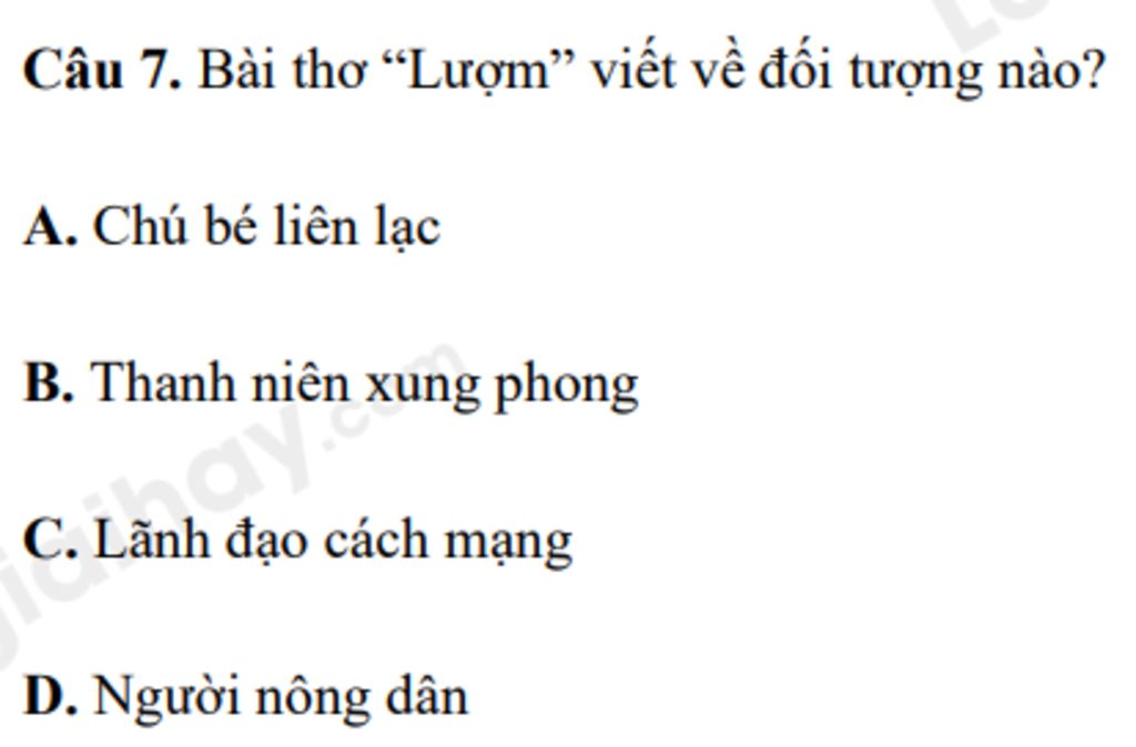 Câu 7. Bài thơ “Lượm” viết về đối tượng nào?