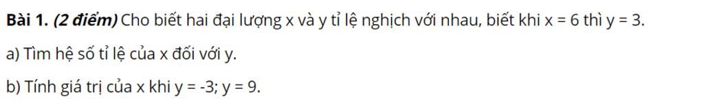 Vậy hệ số tỉ lệ nghịch `x` đối với `y` là `a=18`