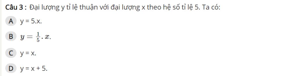 `@` Có `y` tỉ lệ thuận với `x` theo hệ số tỉ lệ `5`