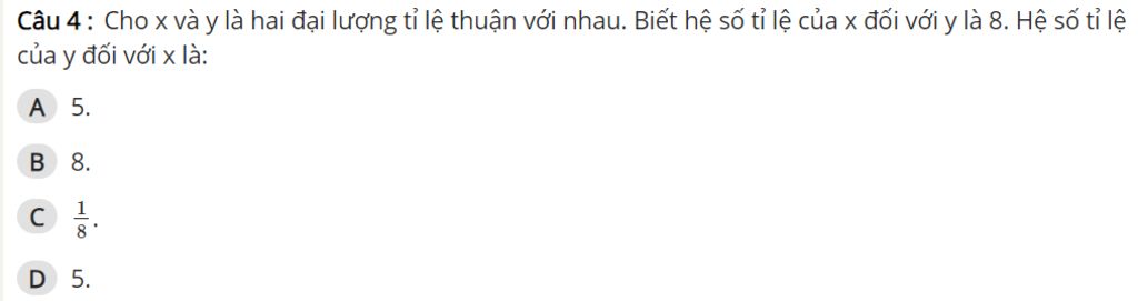 Mà hệ số tỉ lệ của `x` đối với `y` là `8`