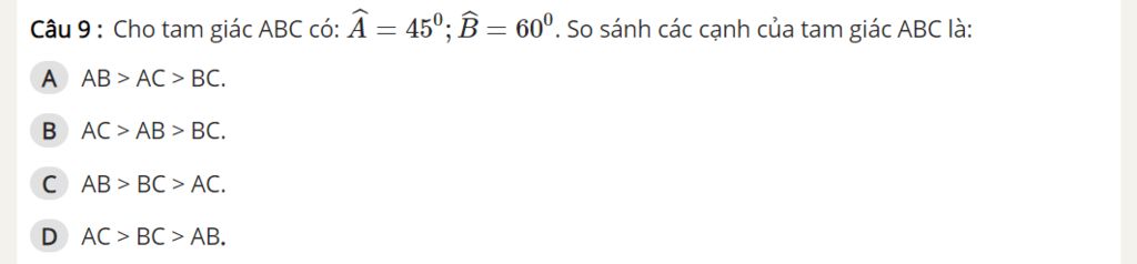 Có `triangle ABC: hatA+hatB+hatC=180^@` (Tổng ba góc trong tam giác)