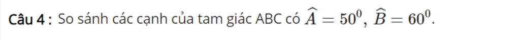 Mà `hat{A} < hat{B} < hat{C}` nên `BC < AC < AB`