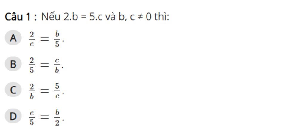 Nếu `2b=5c` và `b,c\ne0` thì `:`