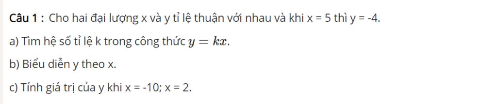 `b.` Theo đề ta có`:` `y` `=` `kx`
