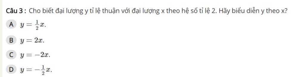 Ta có đại lượng y tỉ lệ thuận với đại lượng x theo hệ số tỉ lệ 2