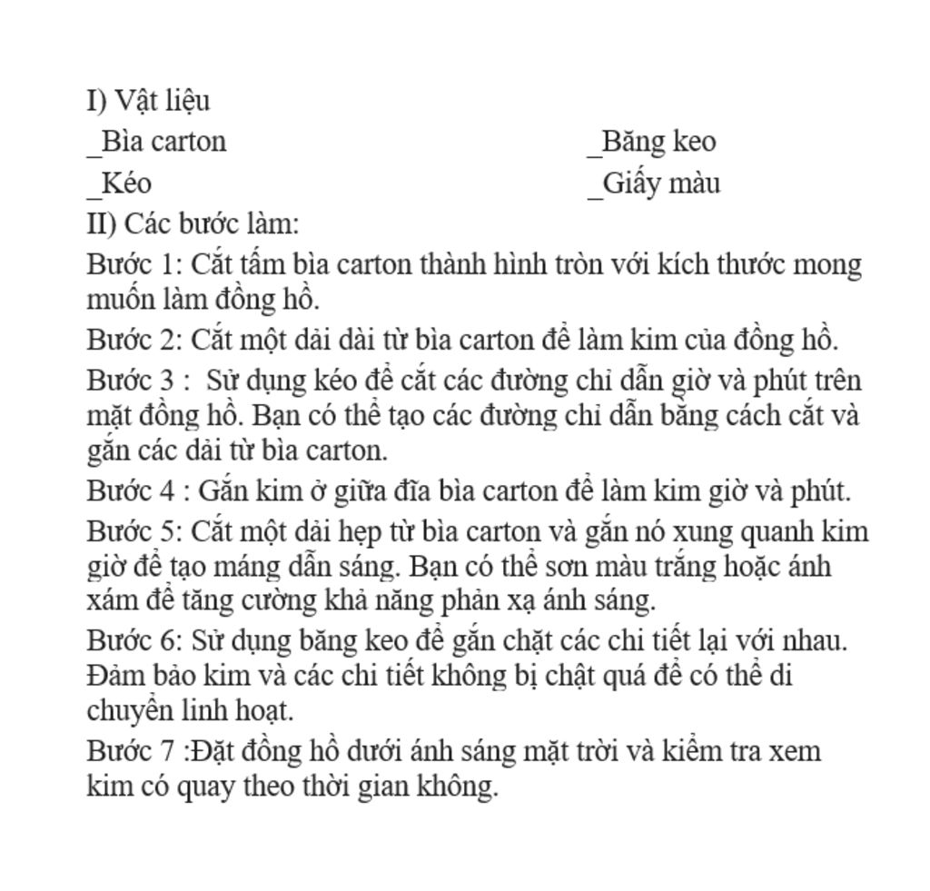 Nguyên liệu và cách làm đồng hồ mặt trời