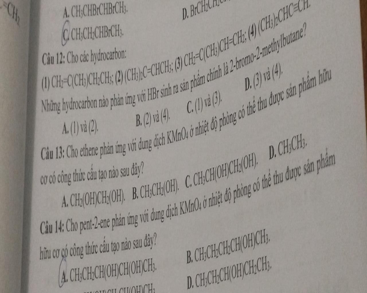 Để tạo ra hợp chất này bằng phản ứng với $HBr$, cần sử dụng các alkene sau để có sản phẩm chính:
