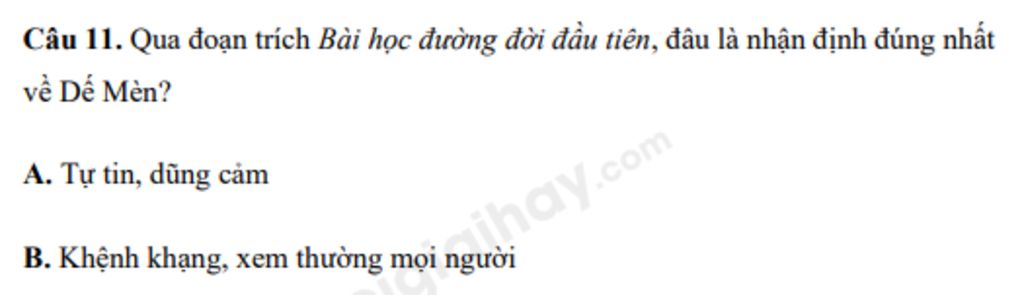Câu `11` : Qua đoạn trích Bài học đường đời đầu tiên, đâu là nhận định đúng nhất về Dế Mèn?