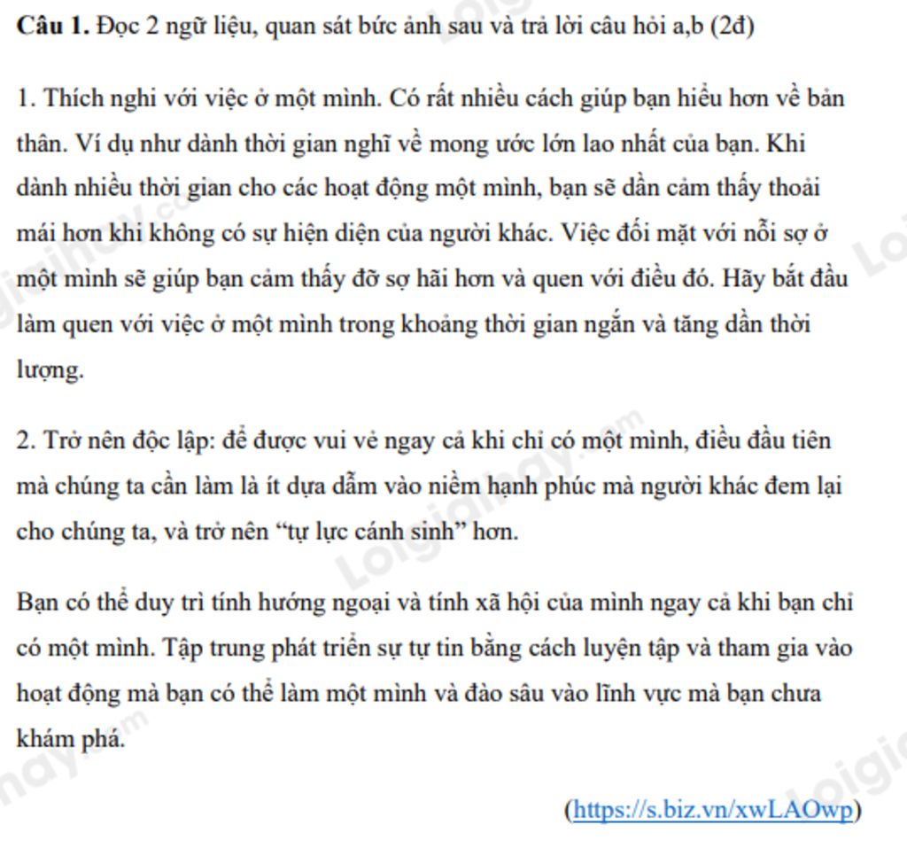 Câu 1. Đọc 2 ngữ liệu, quan sát bức ảnh sau và trả lời câu hỏi a,b (2đ)