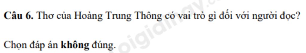`-` Thơ của Hoàng Trung Thông có vai trò giúp con người sống tốt hơn, tâm hồn trong sạch hơn, đánh thức tình yêu với con người, đoàn kết đấu tranh vì dân tộc ta từ đó khiến kẻ thù xâm lược phải khiếp sợ và từ bỏ ý định xâm lăng