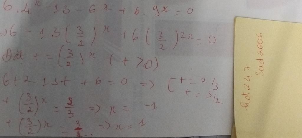`<=> 6 - 13 . (3/2)^x + 6 . (3/2)^(2x) = 0`