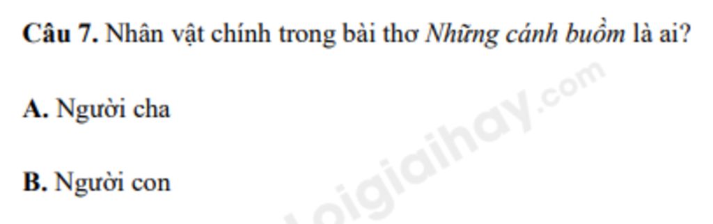 Câu `7:` Nhân vật chính trong bài thơ Những cánh buồm là ai?