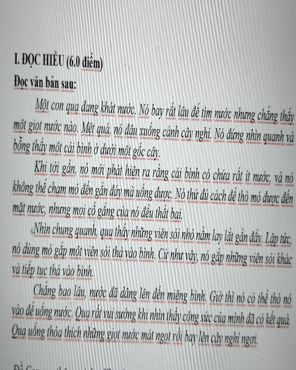 Câu 11:Nêu suy nghĩ của em về việc con quạ tìm được dòng nước trong lành để uống
