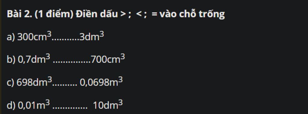 `b)` Có `: 0,7dm^3 = 700cm^3`