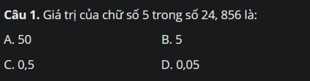 Vậy chữ số `5` trong số `24,856` là `0,05`