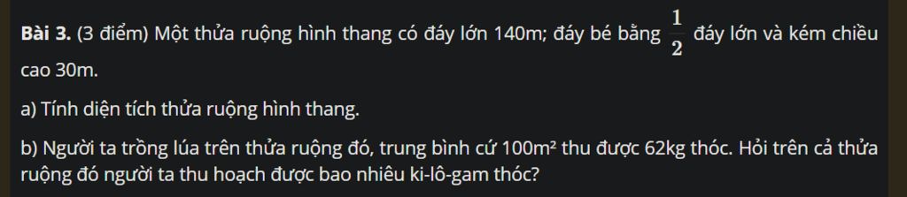 Đáp số : $\text{a) 10500 }$$m^{2}$`,` `b)` `6510` `kg`