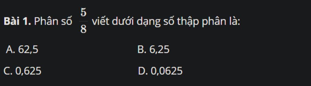 `***` `5/8=(5xx125)/(8xx125)=625/1000=625:1000=0,625`