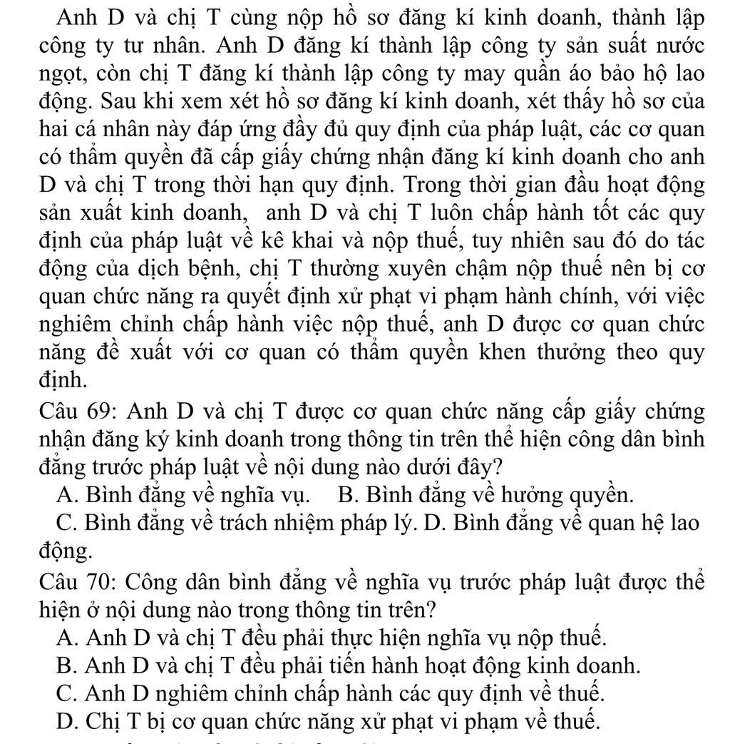 Câu 70 : A. Anh D và ... nộp thuế