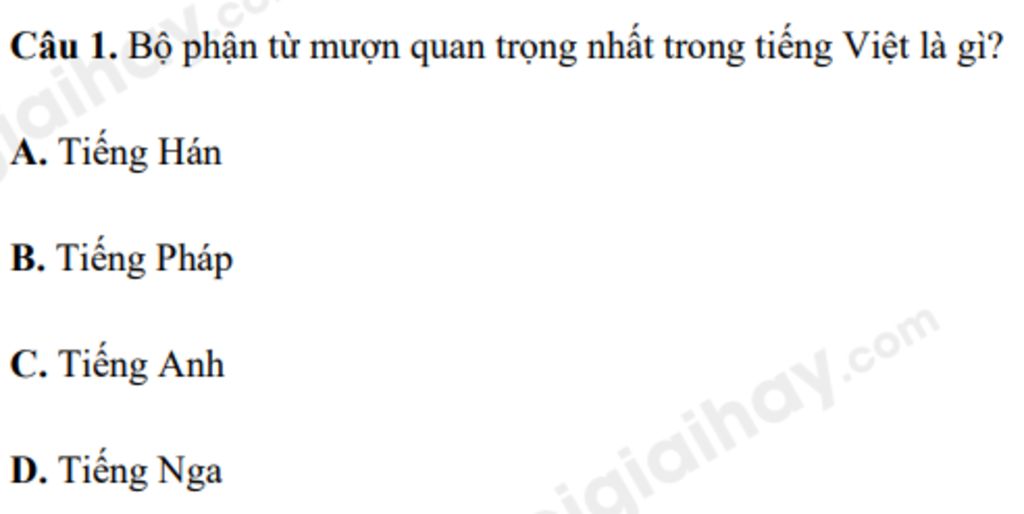 Câu 1. Bộ phận từ mượn quan trọng nhất trong tiếng Việt là gì?