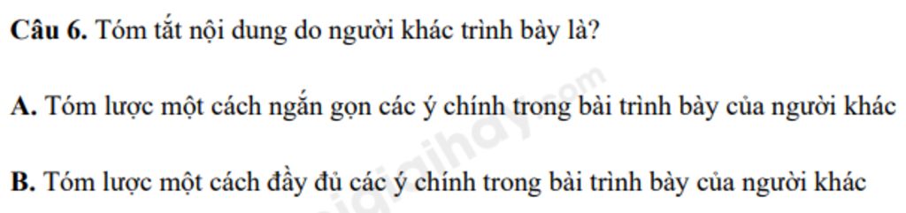 tóm lược một cách ngắn gọn các ý chính trong bài trình bày của người khác là tóm tắt nội dung trình bày của người khác