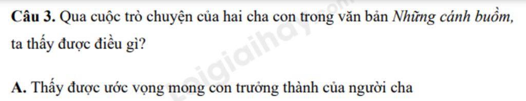 `-` Qua cuộc trò chuyện của hai cha con trong văn bản Những cánh buồm, ta thấy được tình cảm cũng như khát vọng của hai cha con muốn được đi khám phá khắp mọi hòn đảo, mọi người ngoài biển khơi đó là ước mơ của cha con