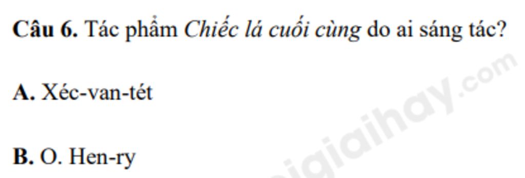Câu `6` :Tác phẩm "Chiếc lá cuối cùng" do ai sáng tác?