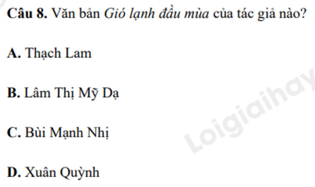 → Văn bản $\text{Gió lạnh đầu mùa}$ của tác giả $\text{Thạch Lam}$